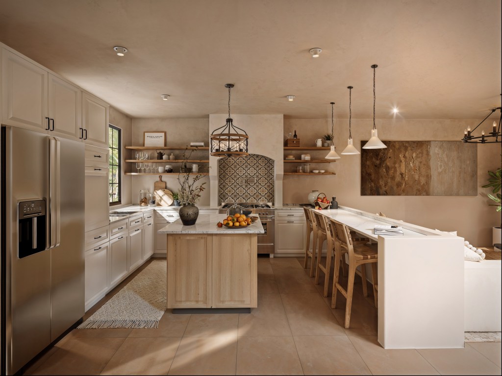 Open concept kitchen / living room, master bedroom, and second level multi-purpose terrace.